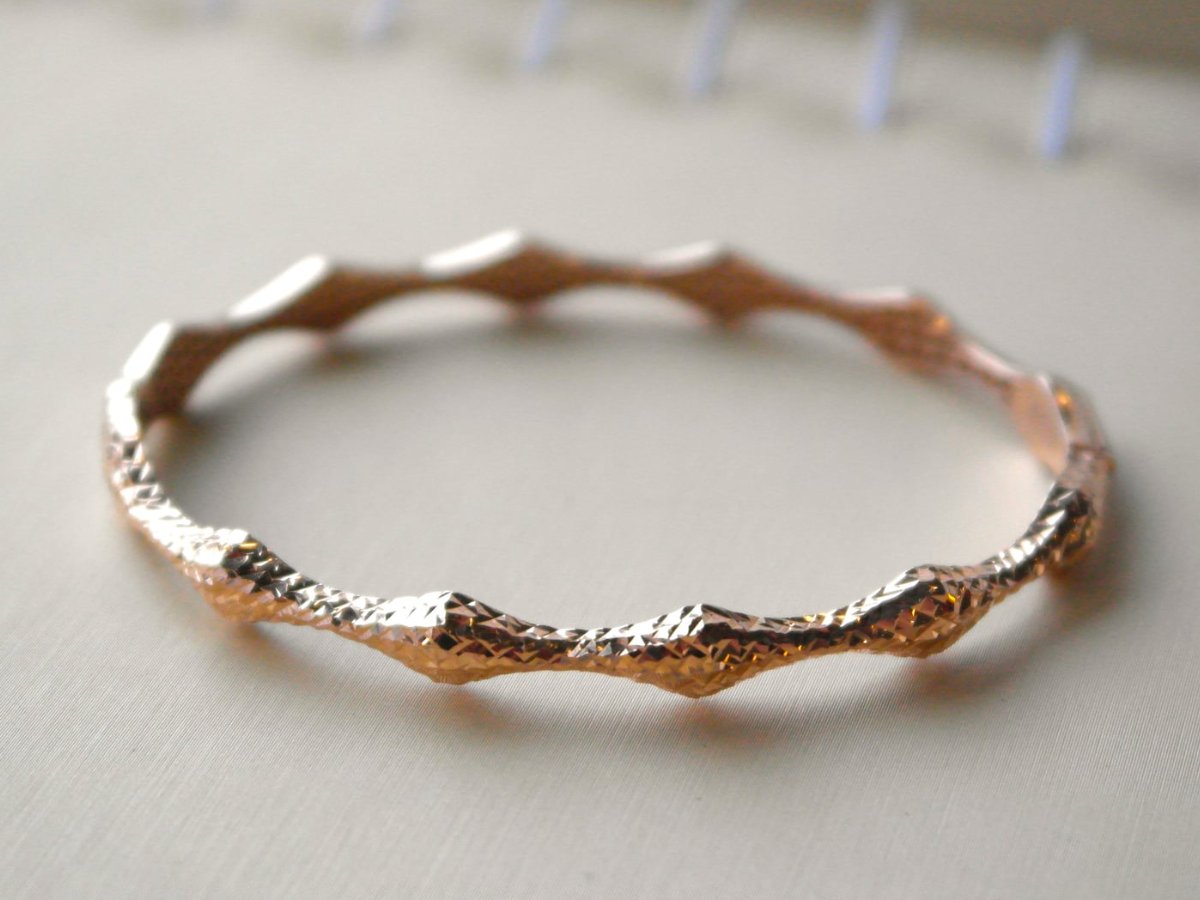 Złota bransoletka z falującym wzorem i diamentowym szlifem powierzchni