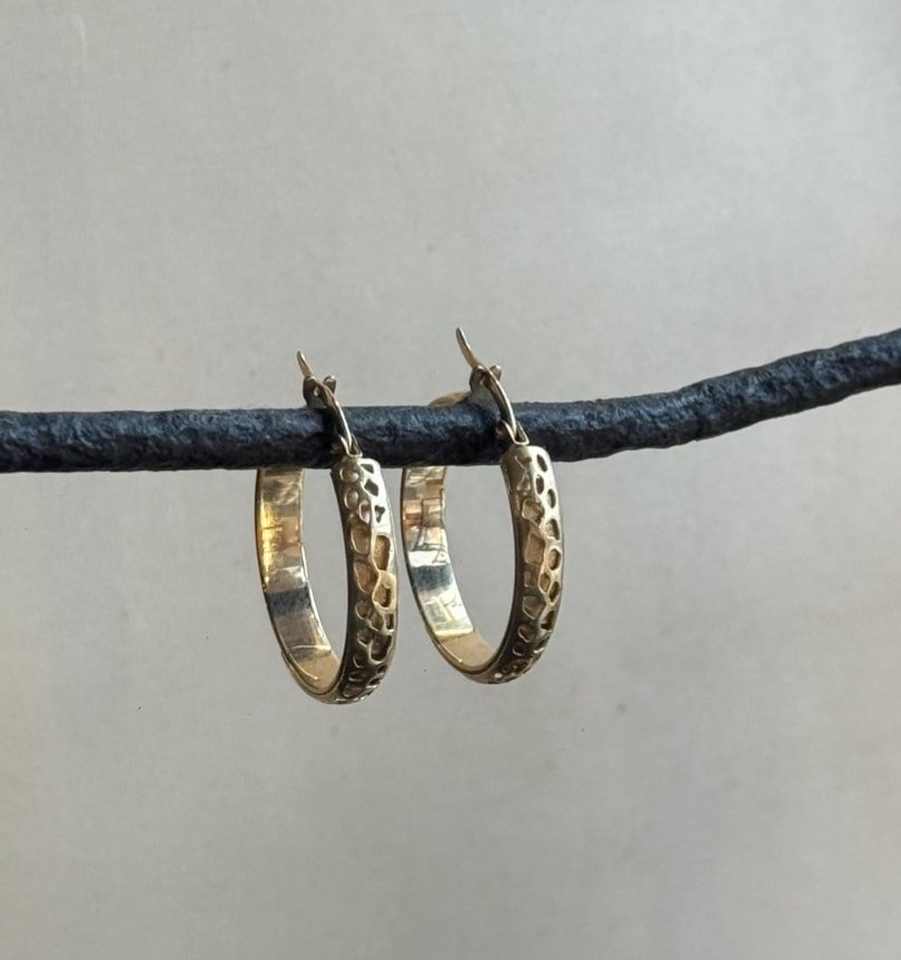 Efektowne kolczyki o geometrycznym kształcie z dekoracyjnym ażurowym wzorem.
